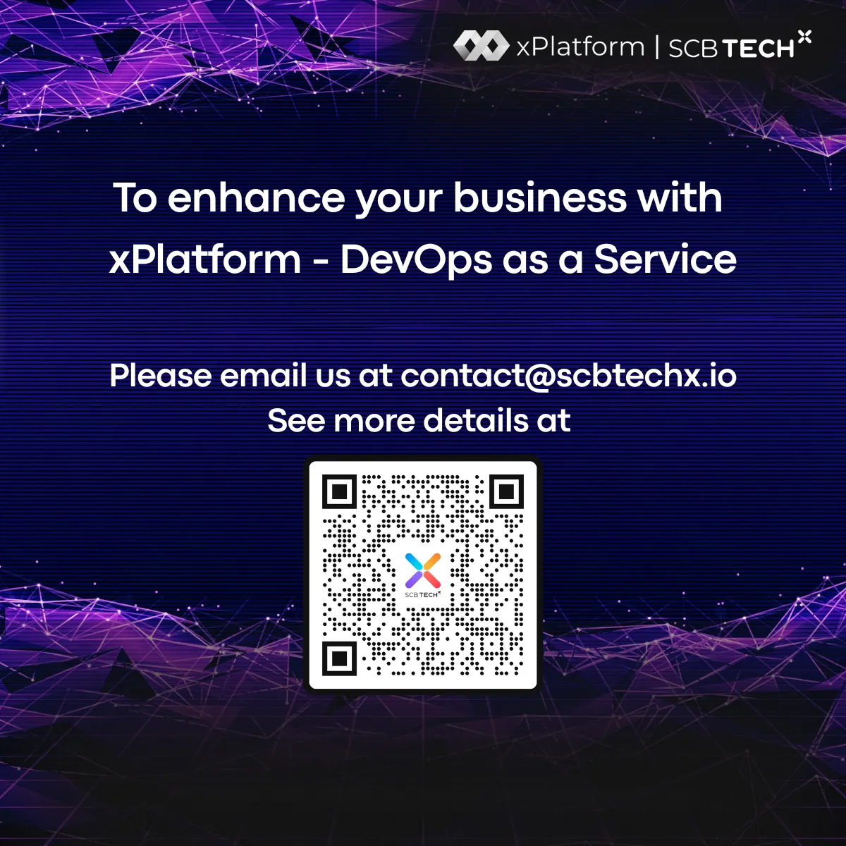 ท้ายนี้หากองค์กรของท่านกำลังมองหาโซลูชันด้าน DevOps ช่วยปรับรูปแบบการทำงานให้เป็นอัตโนมัติ ลดต้นทุนการทำธุรกิจ SCB TechX พร้อมเป็นโซลูชันที่ช่วยพัฒนา และ Deliver ผลิตภัณฑ์และบริการออกสู่ตลาด ต่อยอดองค์กรของท่านให้เติบโตอย่างยั่งยืน